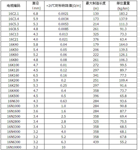 表格1 加热电缆规格(600V 单芯)